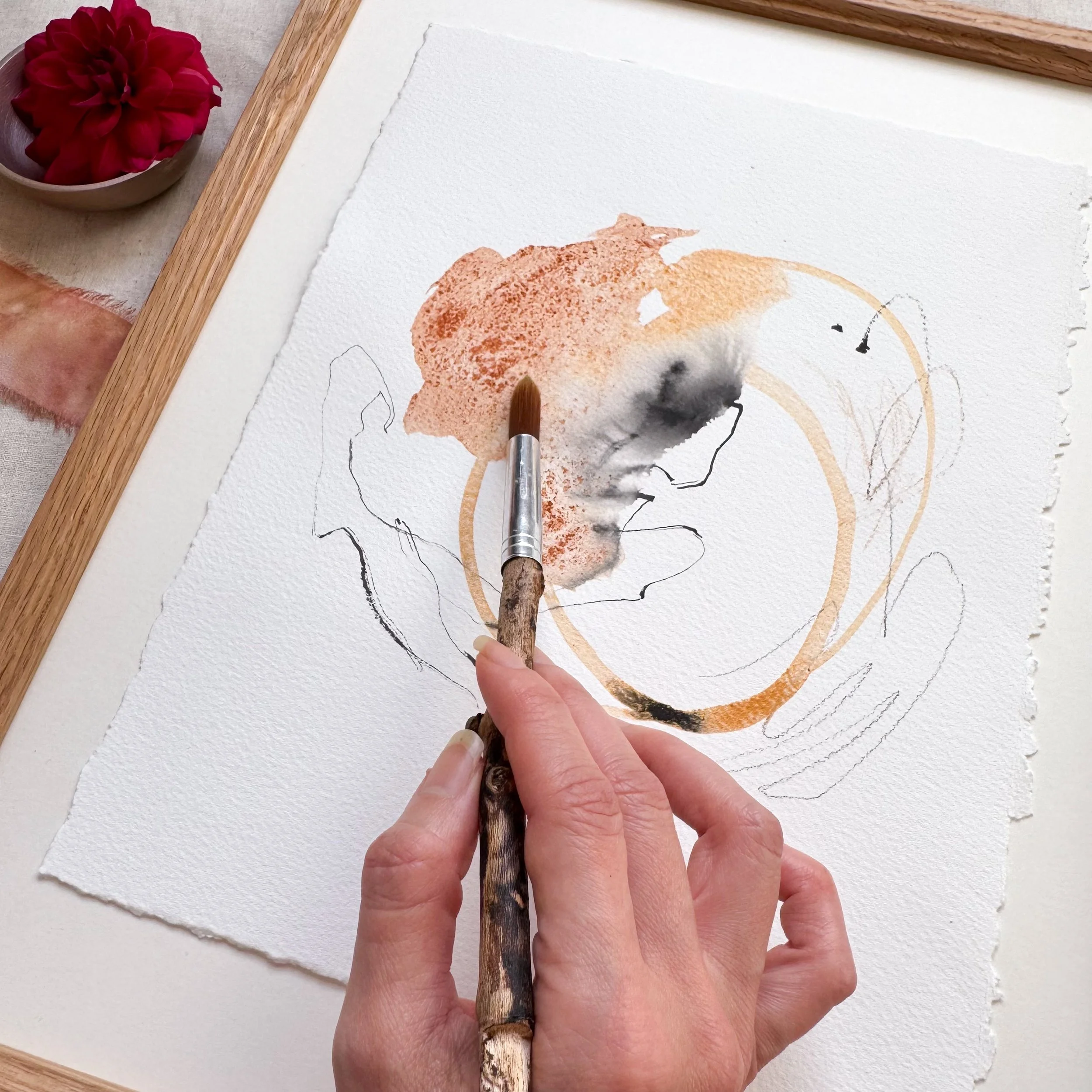 Allow the brush strokes, the granules of the natural pigment, the movement of these paintings - all created in meditation - to offer calm to you. To help the noise of the past and the fears of the maybe’s and what if’s to settle like all the snow drifting to the bottom of a snow globe.
