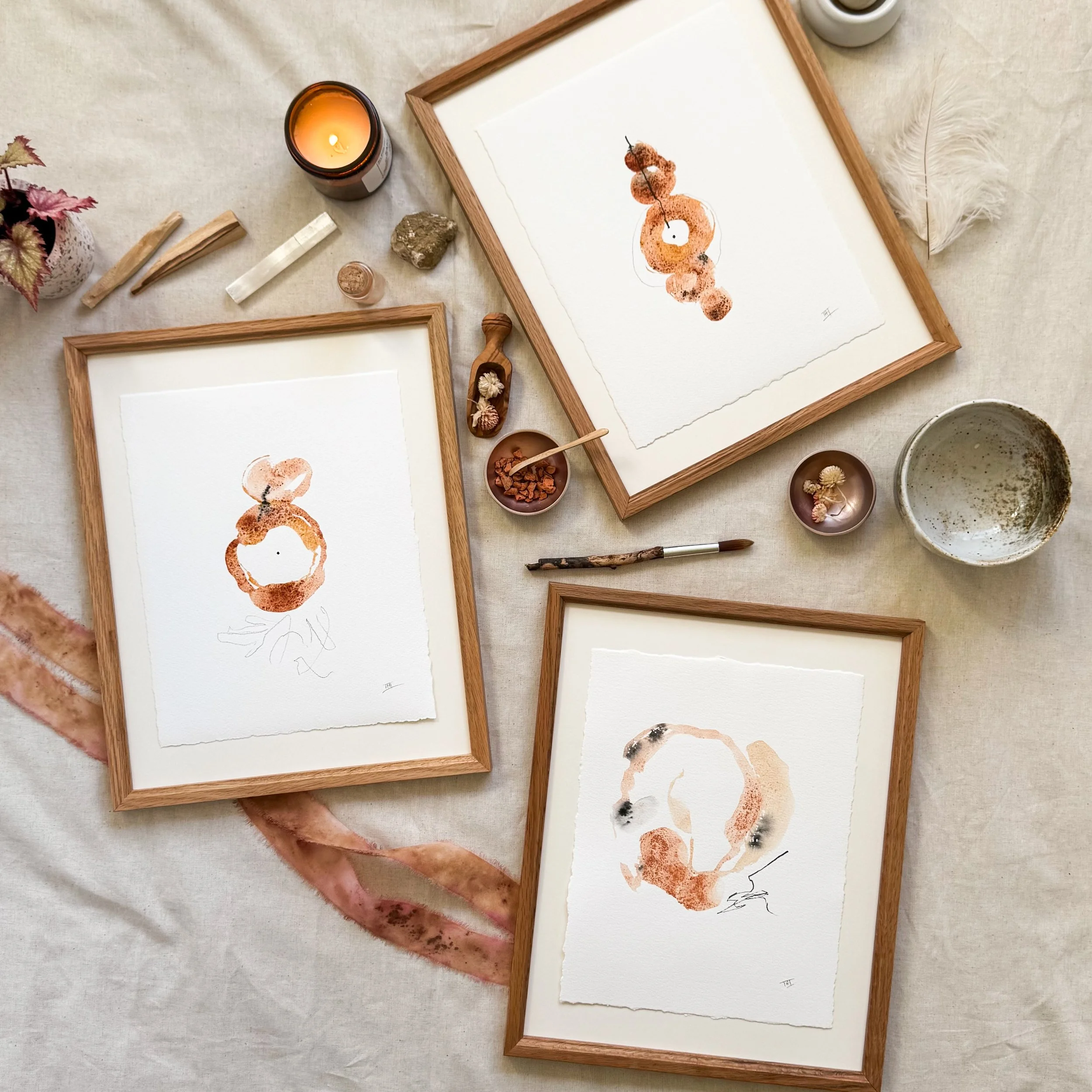 Watercolor made from natural pigments, ink, graphite on vegan, heavyweight 100% cotton, archival watercolor paper