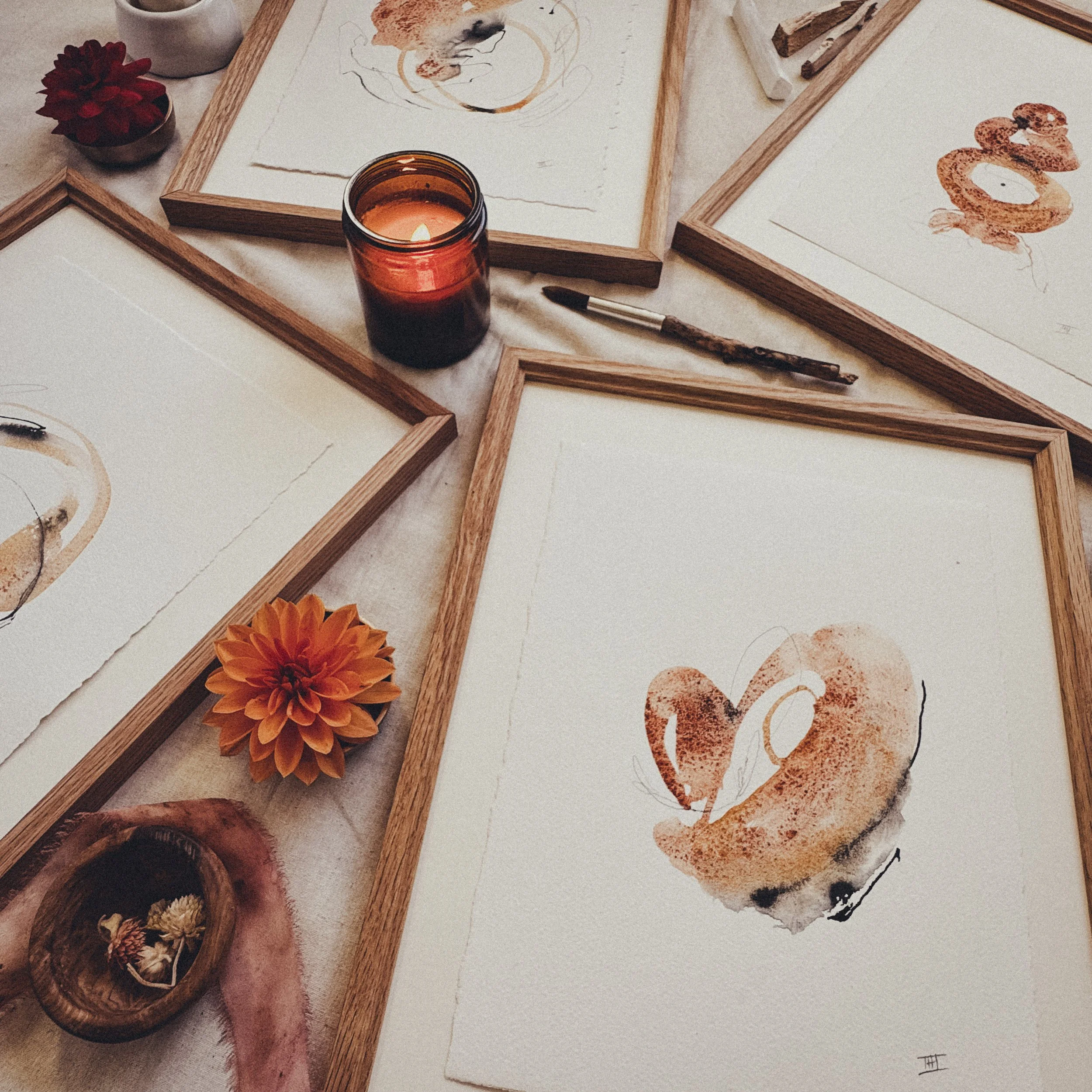 “Grief” is an original art piece created using natural pigments. This piece holds space for our grief as a place where love also sits. Grief being the price we pay for love. That grief is often born from attachment - to a person, a story, a longing. And the reminder that grief is the reminder of our capacity for love.